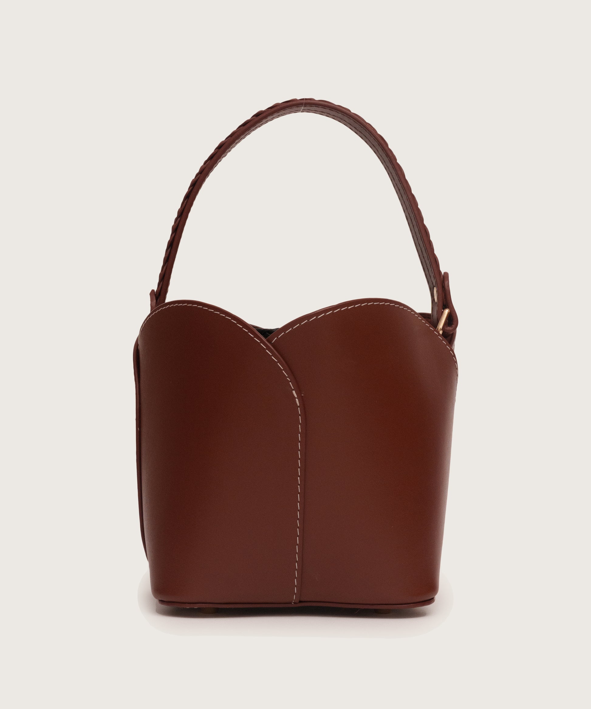 The Amie Bucket Bag is a blend of soft curves and structured charm. Its petal-inspired top edge and braided handle give it a distinctive finish, while the drawstring closure secures a roomy main compartment. Designed with protective metal feet and an additional strap, it offers both handheld elegance and crossbody ease—making it a versatile companion for every occasion.